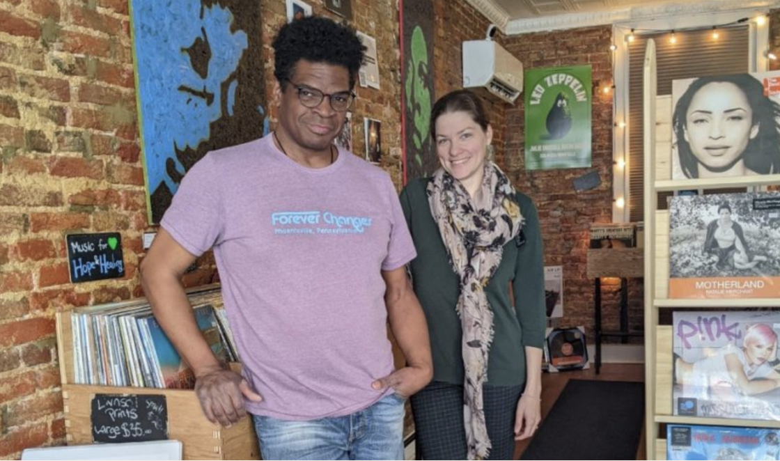 Forever Changes Vinyl Lounge, 10 S. Main St, Phoenixville PA. Blue Note Authorized Dealer and FAMS Member. Owned by Shawn Cephas. The store traces its lineage to the King James Sound Center, opened by Shawn's father James Cephas in 1967. The family business ran until James' death in 1997, but Shawn kept the dream alive, finally opening Forever Changes, first as a pop-up, in 2019.